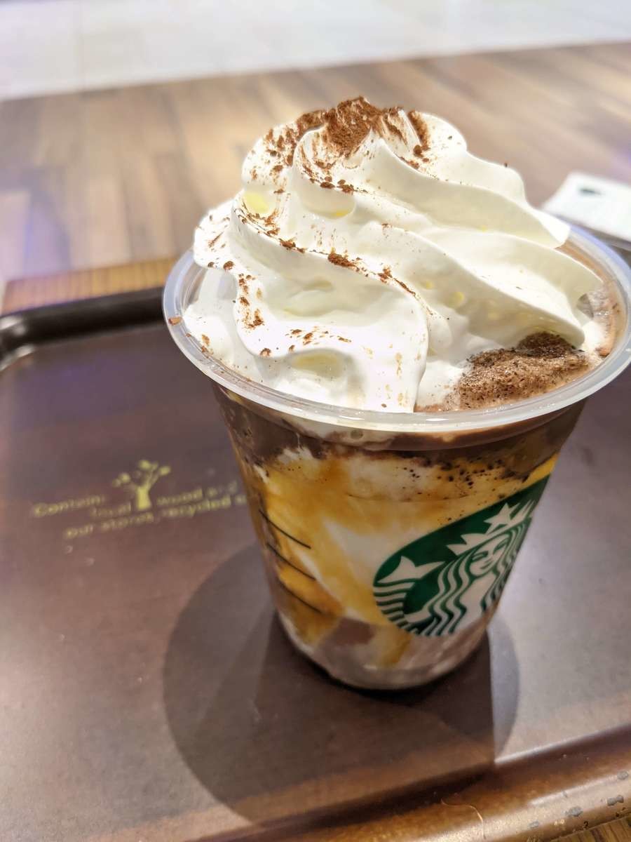 キャラメルフラペチーノにカスタマイズするので、「ジャバチップフラペチーノ®」 が発売された時の値段よりは割高になりますが、チョコチップとコーヒーのほろ苦さが最高です。