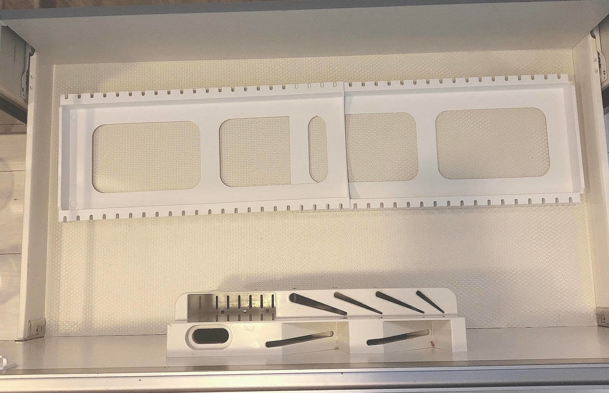 簡単に設置できて、伸縮するのでキッチン収納に合わせてぴったり幅を合わせることができます。我が家のキッチン引出しは、デッドスペースが無くなって、無駄がないキッチン収納が叶いました!