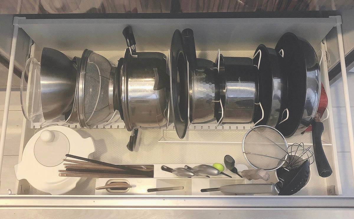 みなさんは、鍋やフライパン、ざるなどキッチンアイテムの収納ってどうしてますか? かさばる上に、すぐに取り出せないとかなりのストレスですよね。