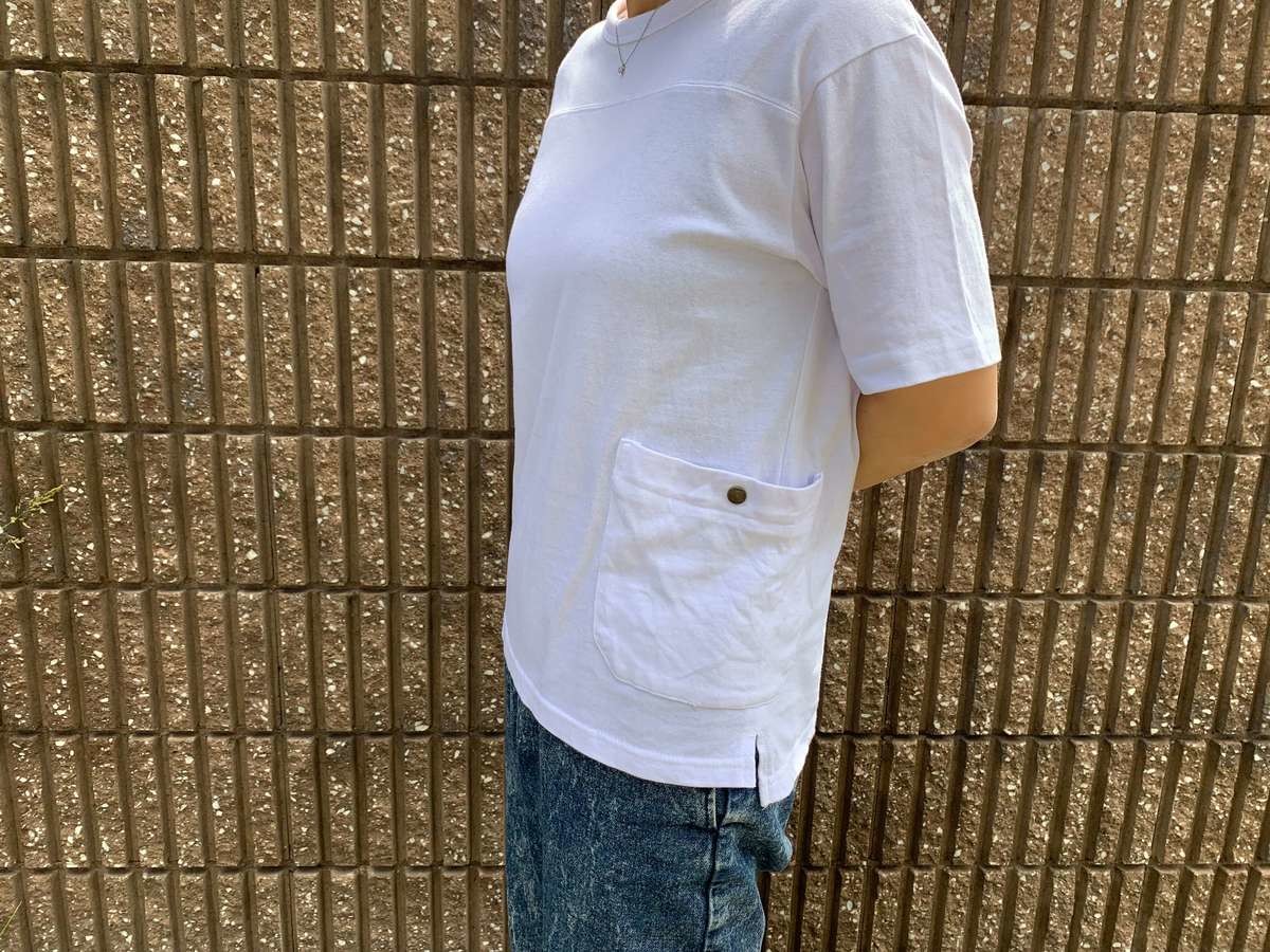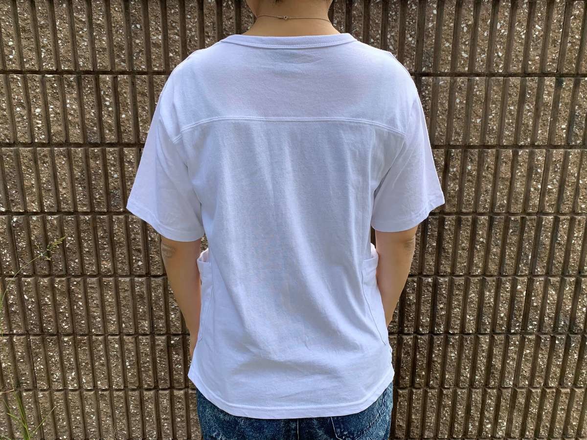 生地はコットン100%です。一般的なTシャツに比べると、少し薄いかなと感じました。Tシャツの中には、キャミソールやタンクトップなどを着用すると良いかと思います。