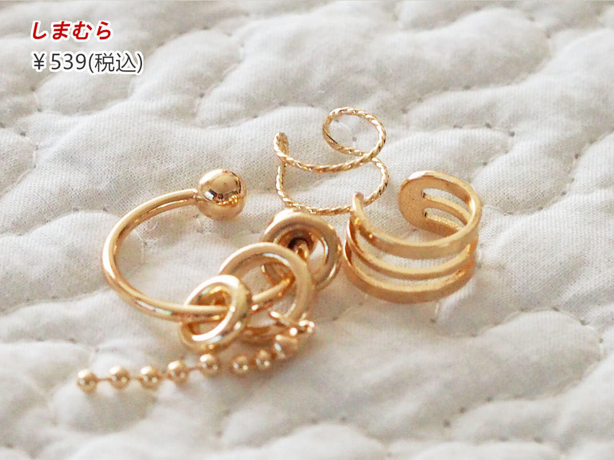 ピアスの穴がなくても、重ね付けをして耳元を華やかに演出できます。