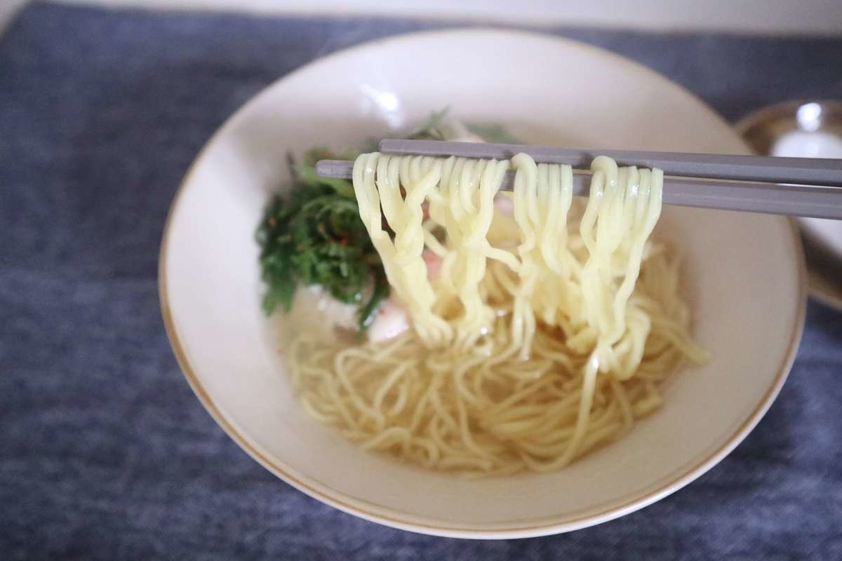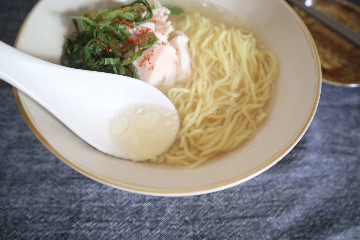 スープを一口飲むと鶏の旨みがはじけます。このシリーズの特徴としてスープの出汁が上品でとても美味しいです。旨みのあとに沖縄県産シークワーサーの爽やかな酸味を感じます。