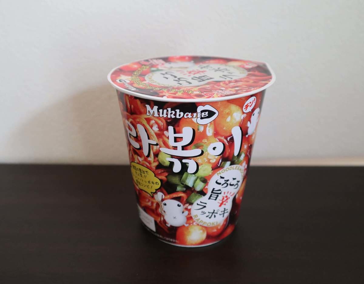 カルディ“ラッポギ”213円。 韓国野菜の人気メニューのハイブリット料理です。 ラーメンとトッポギが合わさった商品です。