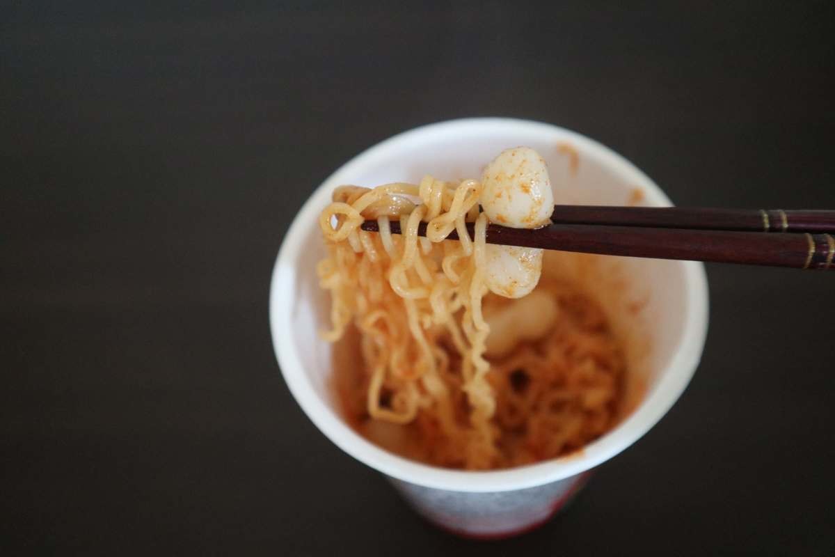もちもちしたトッポギとコシのある麺が合わさり新感覚!!そして想像以上に美味しい!
