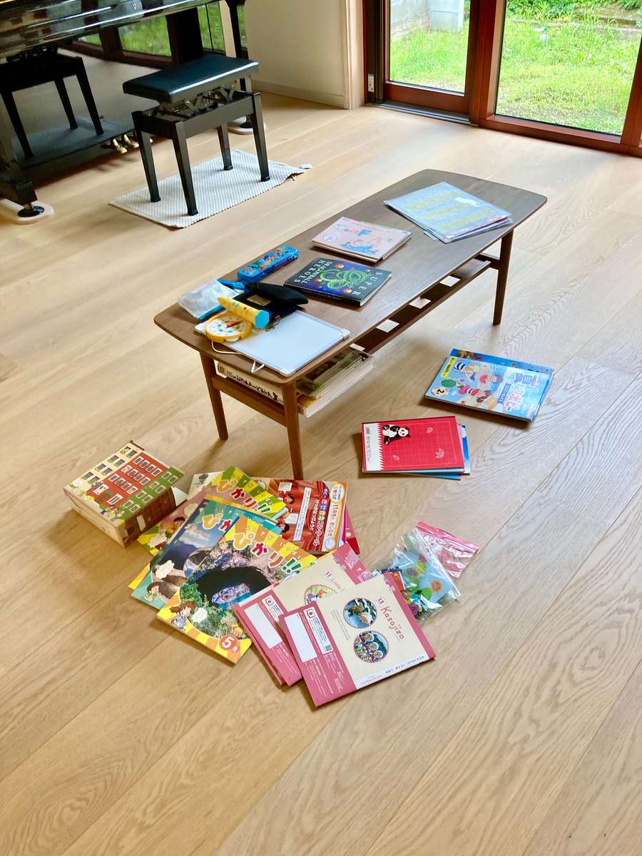 我が家もその方針で過ごしているのですが、そうすると出てくる一番の問題は、リビングに子どもの学習グッズが散乱するということでした。