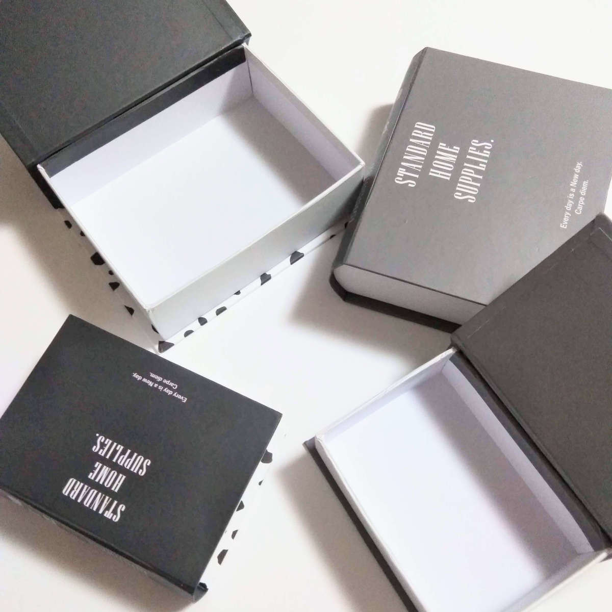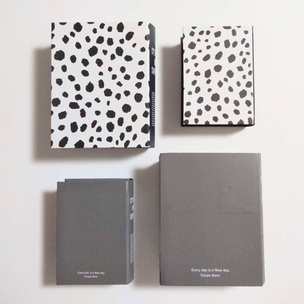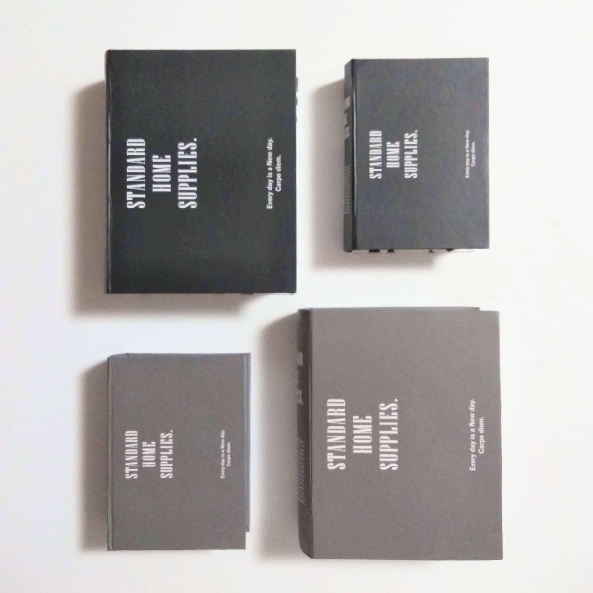 - ペーパーボックスブック型 ブラック 大・小、グレー 大・小 各110円(税込)