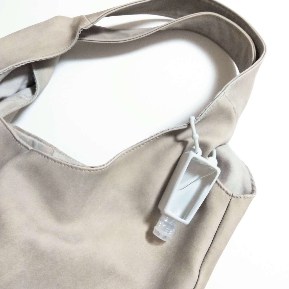 バッグの中に入れているときは、取り出すのに時間がかかることもありましたが、持ち手に掛けているとすぐに見つけられ、必要な時にサッと消毒ができてとても便利です。