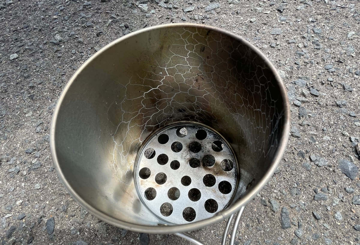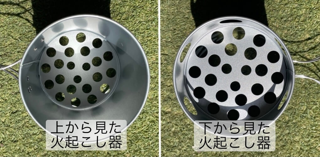 火起こし器を覗いてみると、底にはいくつもの穴が空いています。