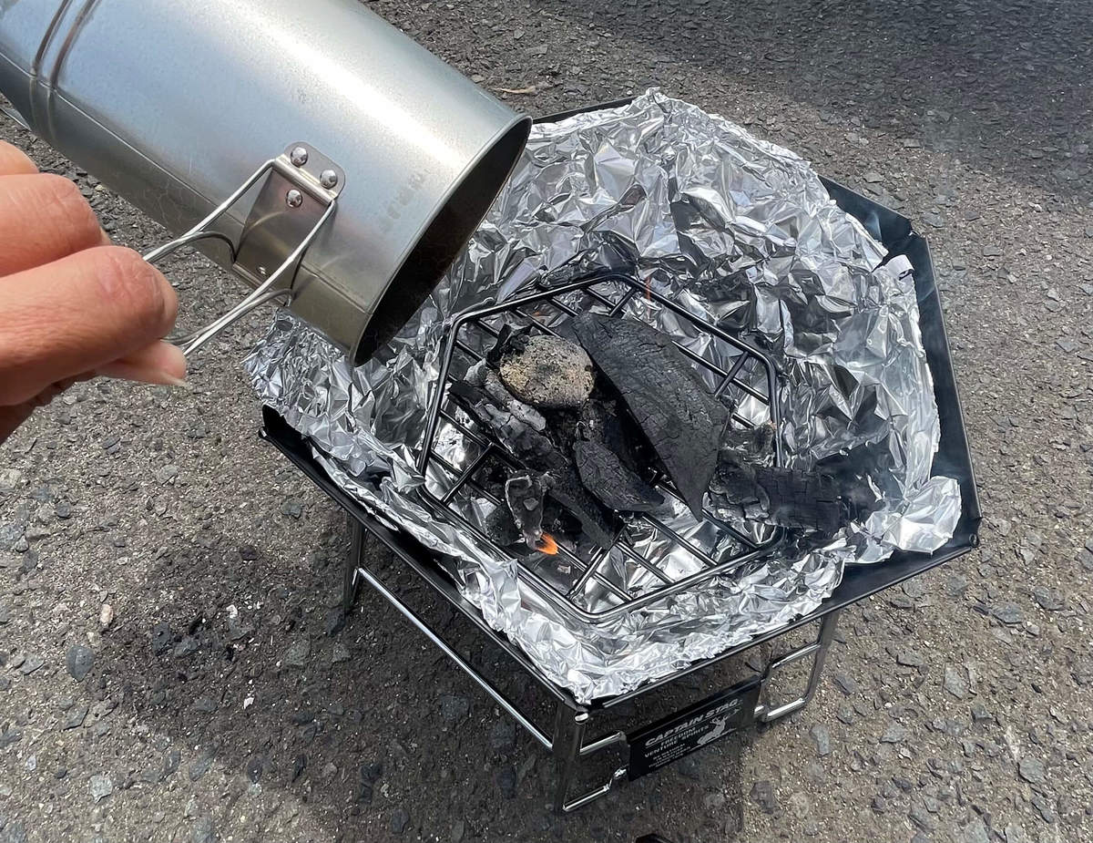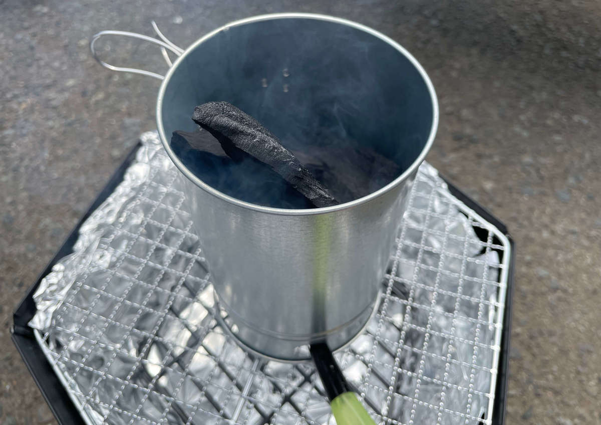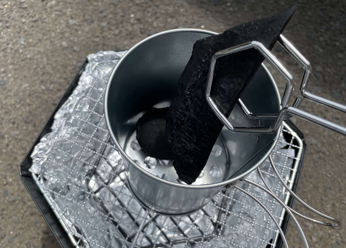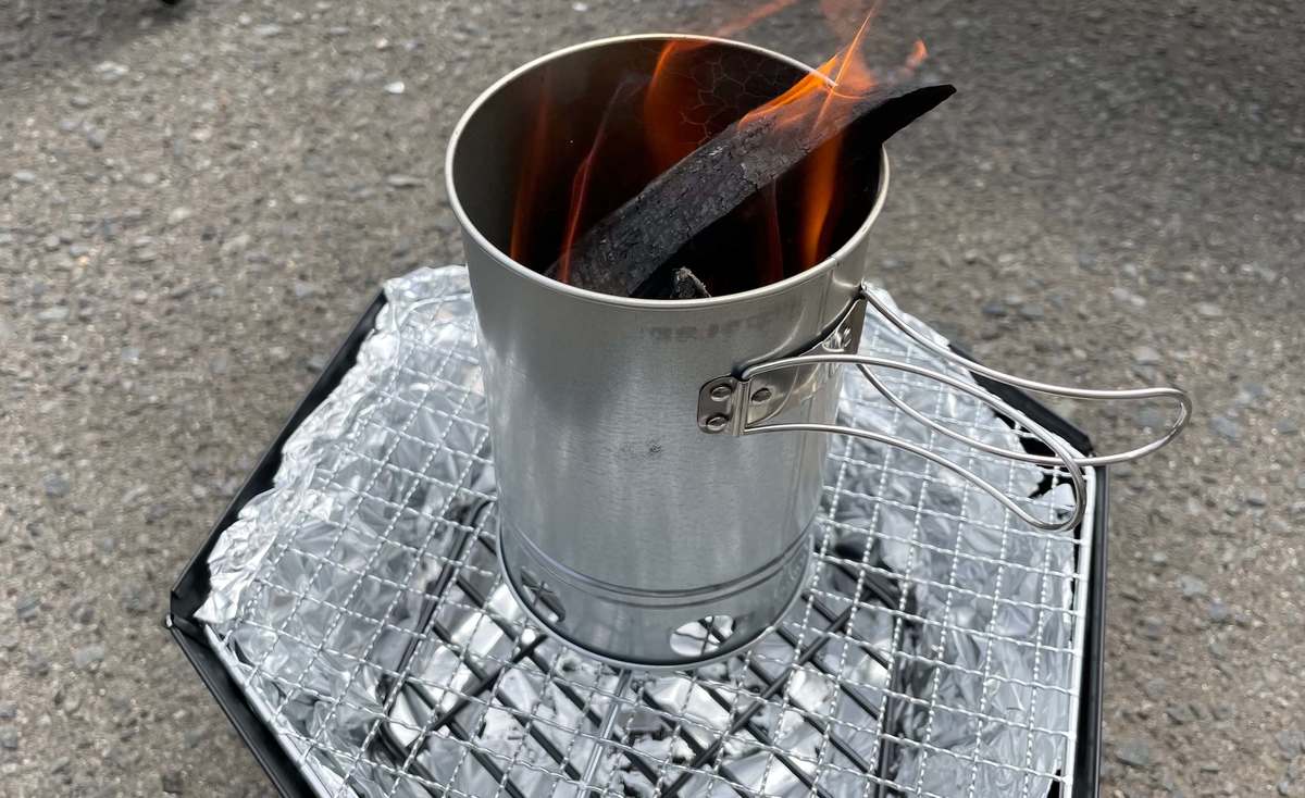 使用後の火起こし器はしっかりと熱を取ってから、片付けるようにしてくださいね。今回ご紹介した火起こし器はソロキャンプや2〜3人向け用のサイズで、大きな炭は火起こし器の中に入りません。