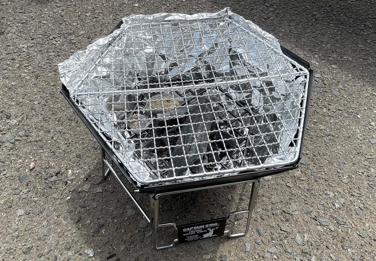 こちらは焚き火やバーベキューの片付けの際、台から剥がすだけでシートを敷いた部分は汚れずに片付けをする事が出来るアルミシートです。