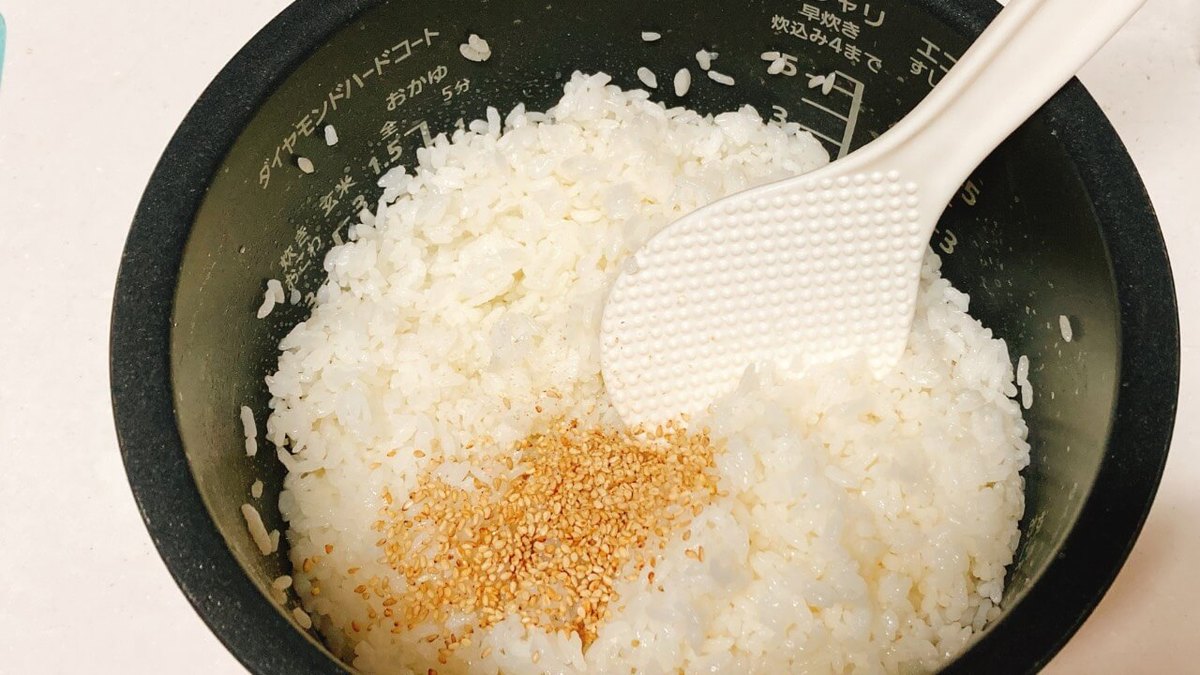 米2合に対し、酢大さじ4、砂糖大さじ2、塩小さじ1を入れています。それプラス、今回は白ごまを大さじ2ほど加えました。