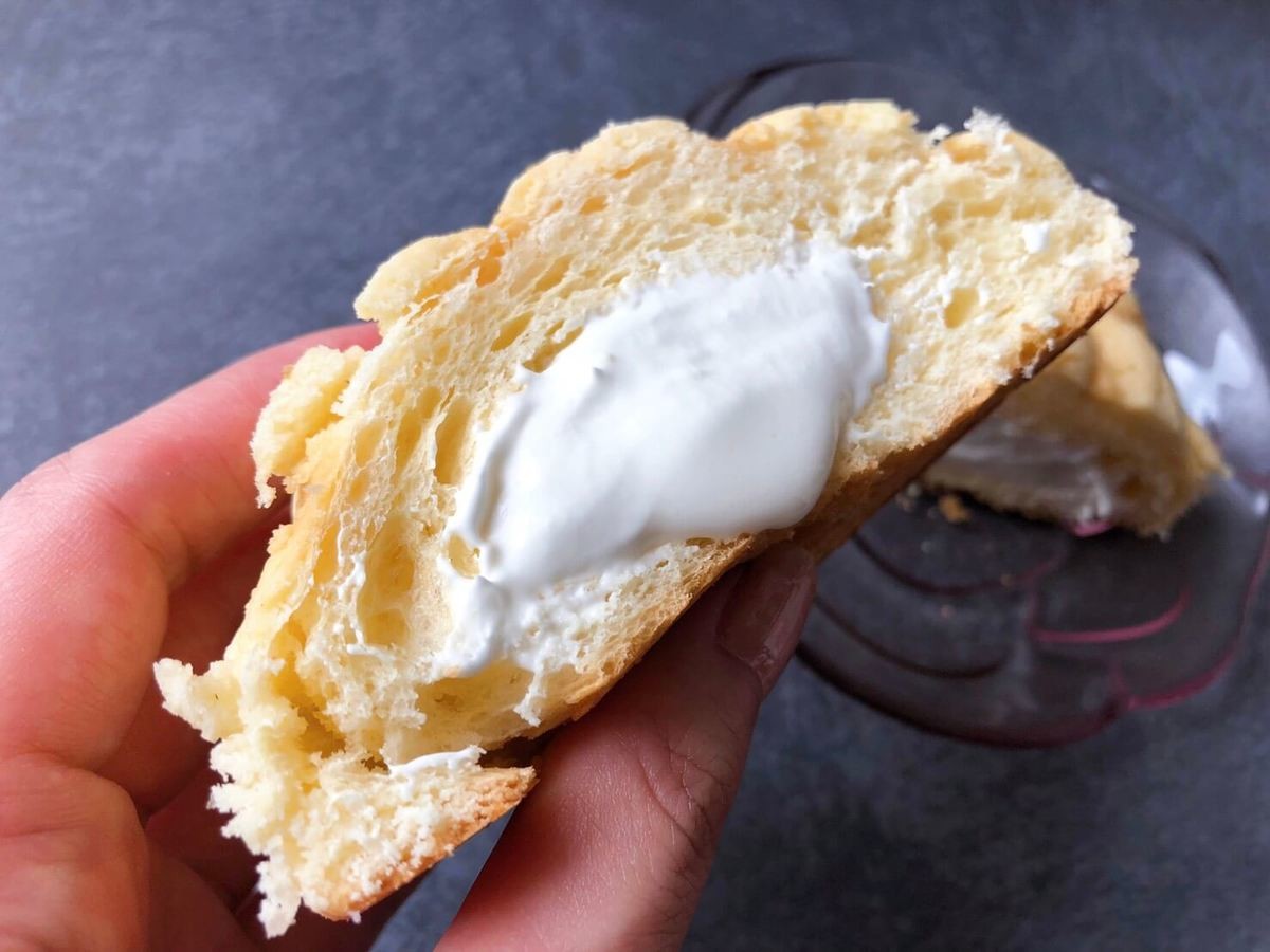 温めることで生地がしっとりします。何より中からミルクホイップクリームがとろりと溢れ出てきて、もう、最高なんです!