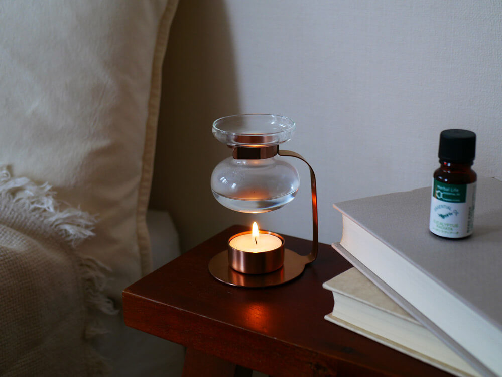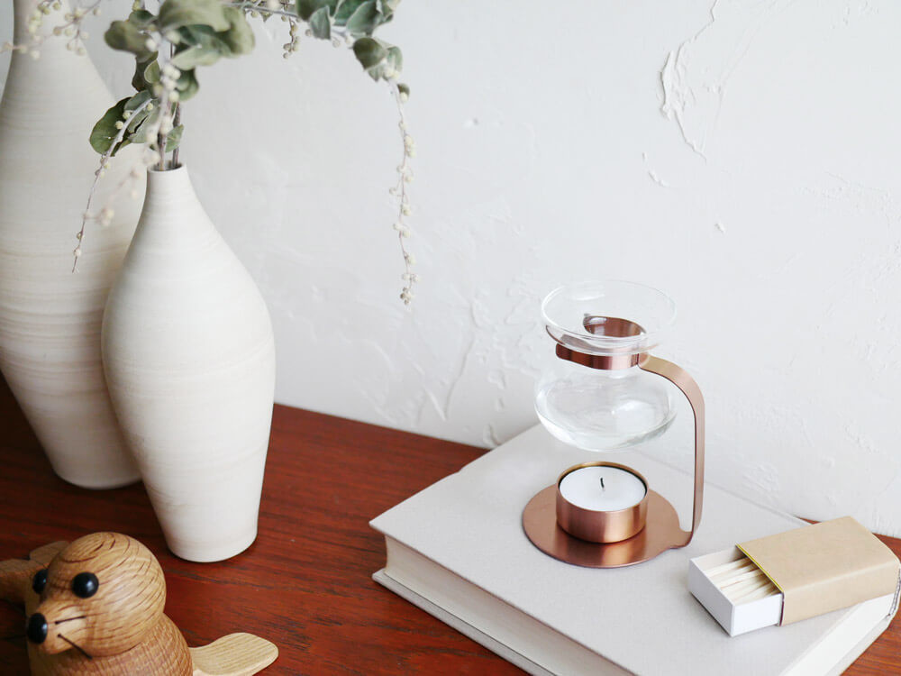 インテリアとしても完成度が高い「アロマオイルウォーマー」は、棚の上やベッドサイド、サイドテーブルなどに置くだけで、空間を一気にセンスアップ!