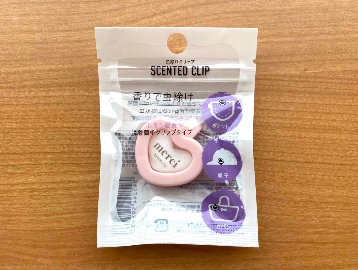 こちらは筆者が毎年、犬の散歩用バッグに取り付けている「虫よけクリップ ハート」。