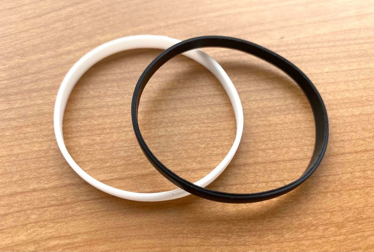 ブラックとホワイトの2色が入っており、シーンに合わせて使い分けられます。手首だけでなく、足首にも取り付けられるので、サンダルなどで肌が出ている時も◎