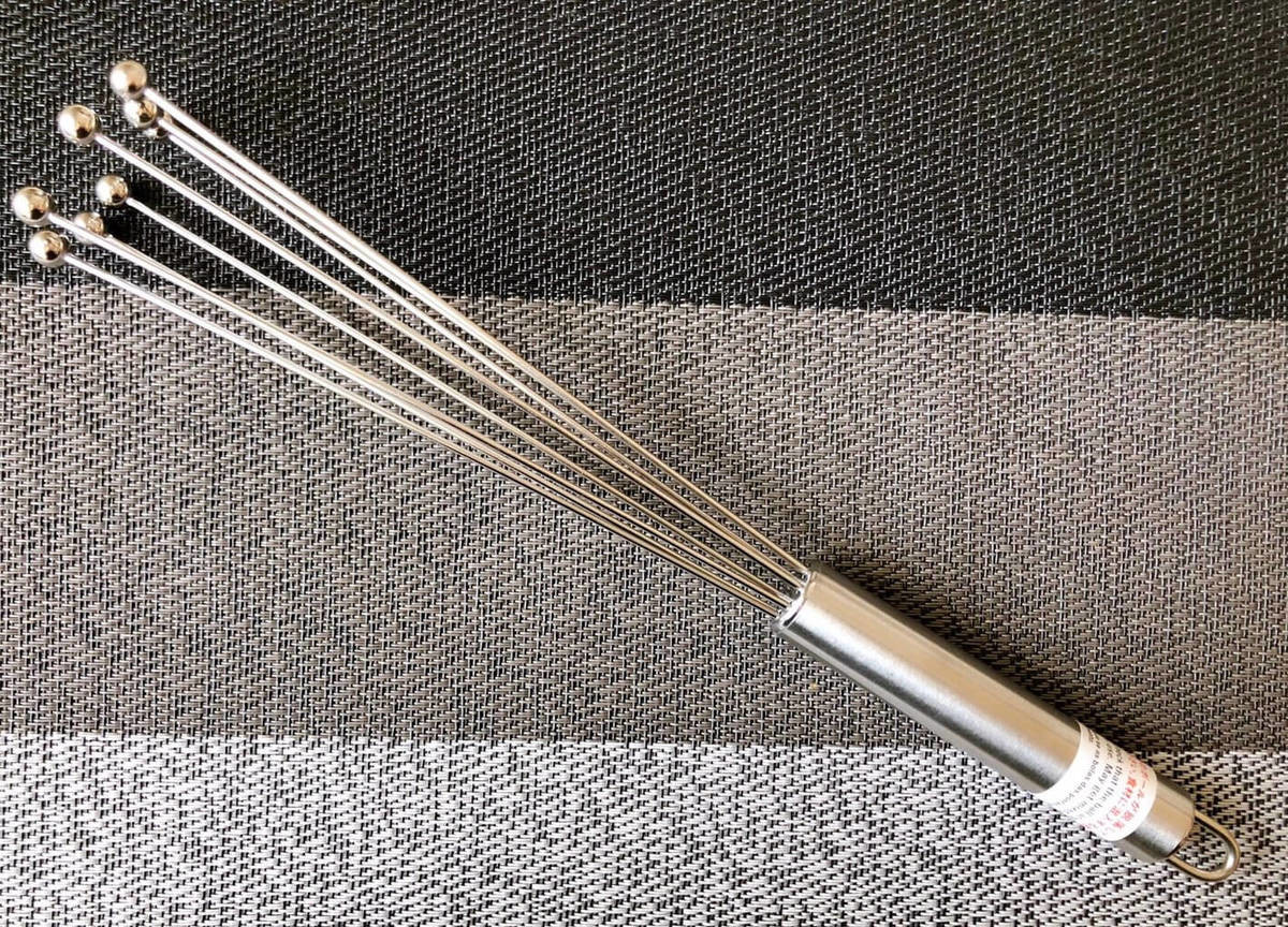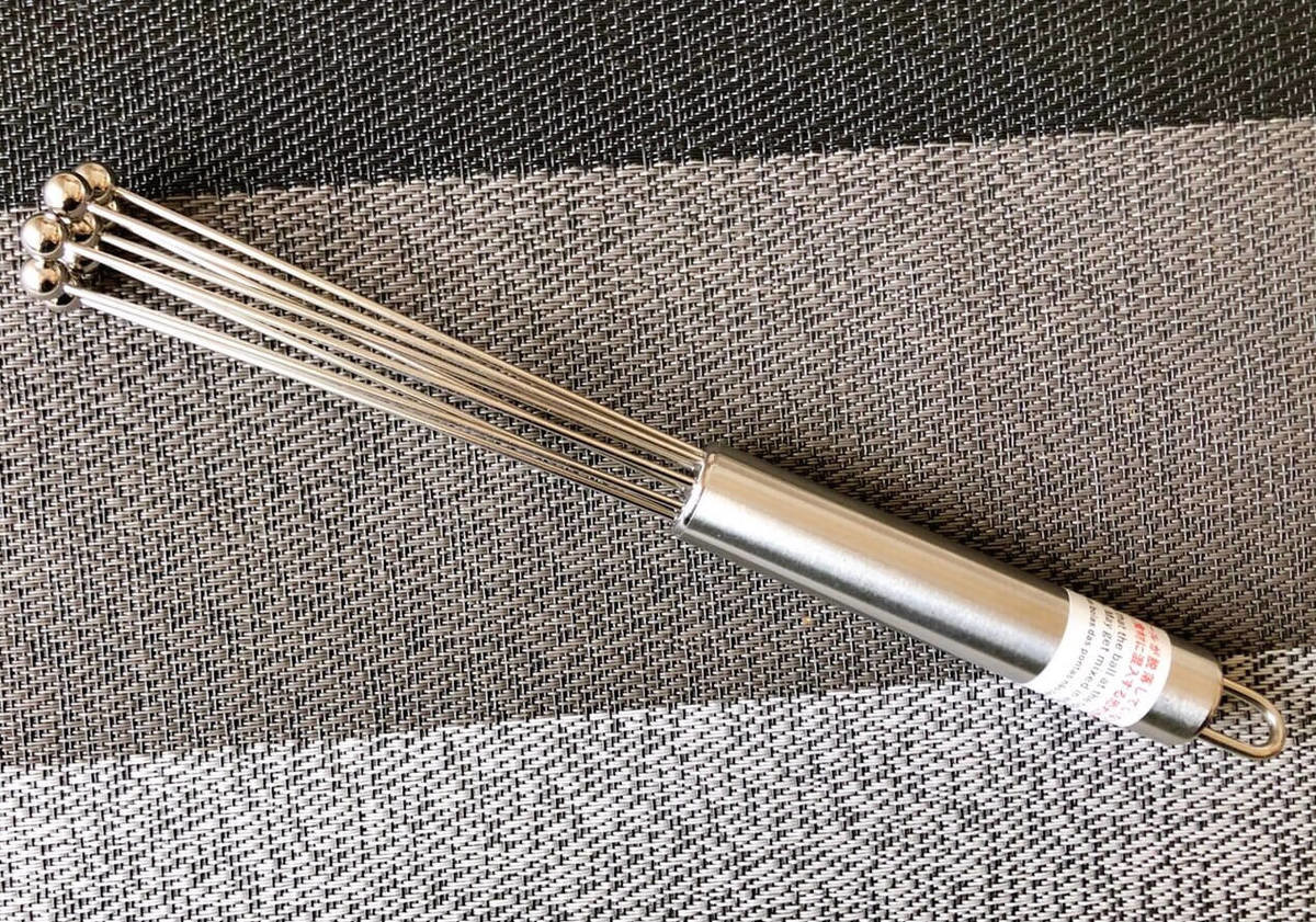 私たちが知っているあの、先の丸い泡立て器とは見た目が全く違います。