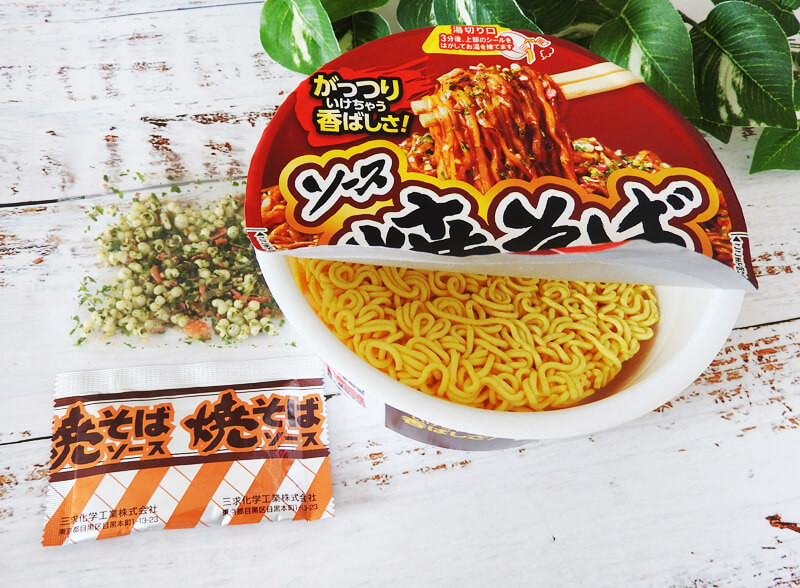 粉末の焼きそばソースに揚げ玉入りのふりかけ。激安価格ながらも、ふりかけがあるのは嬉しいですね。