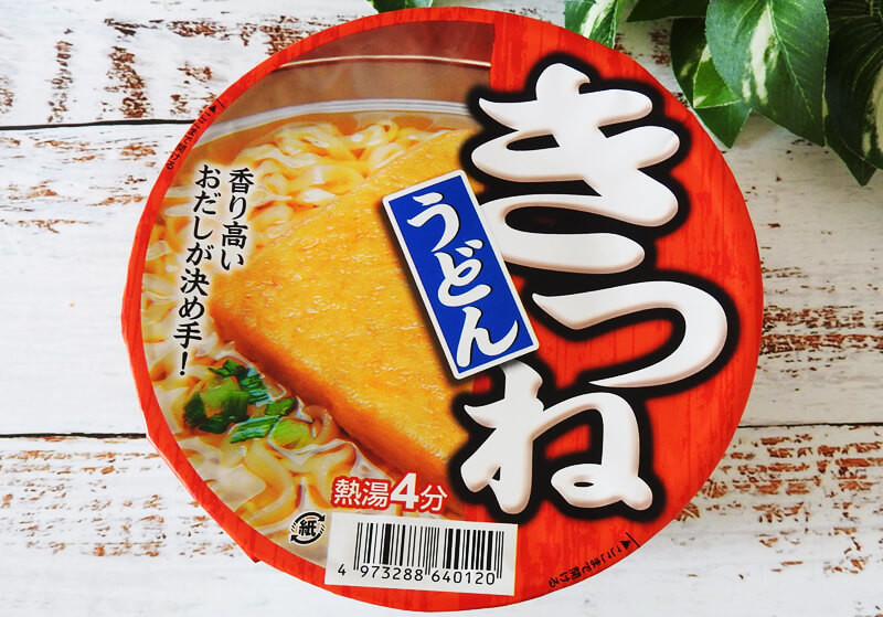 マルちゃん「赤いきつね」を意識したような赤いパッケージが印象的な「きつねうどん」69円(税込)。製造元は麺’s味工房のカップ麺と同じく「株式会社 麺のスナオシ」でした。