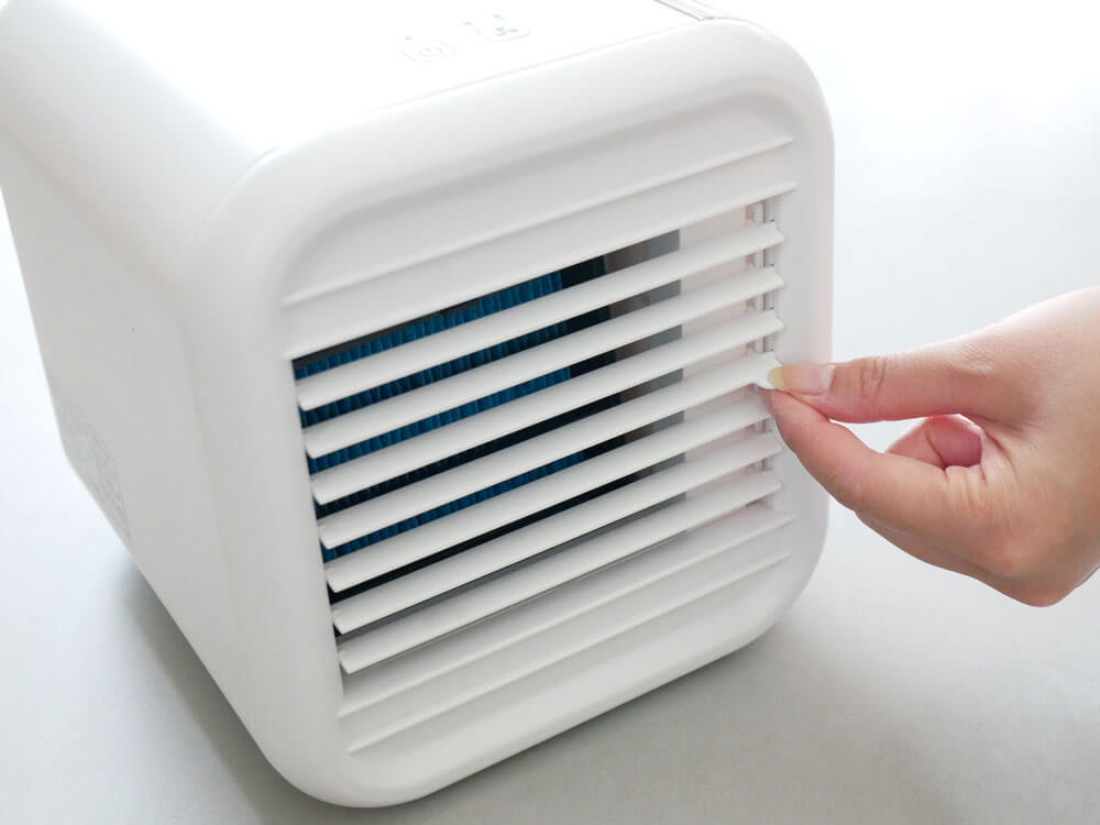 水タンクに水や氷を入れれば、その液体が気体になって蒸発し、冷たい風を拡散してくれます。 水分を含んだしっとりとした涼風を感じ、一気に体を冷やすことができるんです。