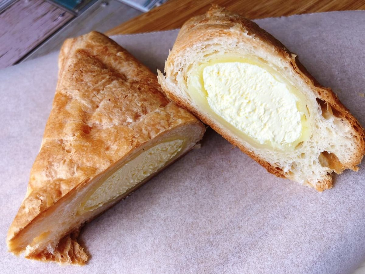 安くて大きいスイーツといえば、中のクリームやあんこ、チョコが少なくて、食べてちょっと残念な気持ちになりつつ、「ま、安いからこんなもんか」と納得するのがお決まりですが、このクリームの量はなんでしょう!