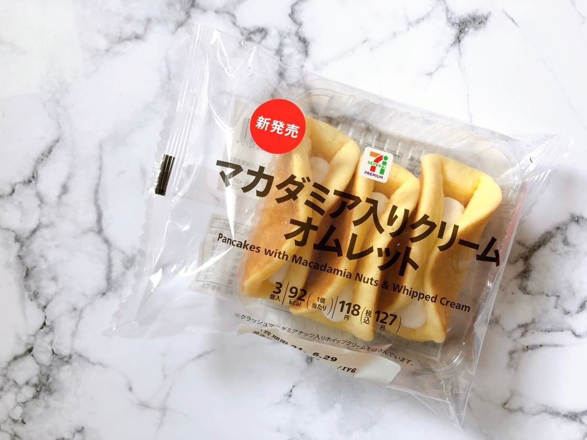 小ぶりで食べやすそうなのと単純に美味しそうだったので試しに買ってみました。こちらもセブンイレブンの新商品で、"マカダミア入りクリームオムレット"です。3つ入りで税込118円は魅力的♡