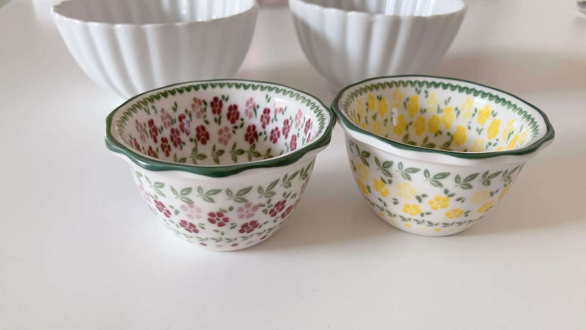 全体的に小花柄なのに、くどさはなくアンティークっぽいデザインなのに全体的に見るとモダンさも感じるという、なんとも不思議な雰囲気の小鉢。