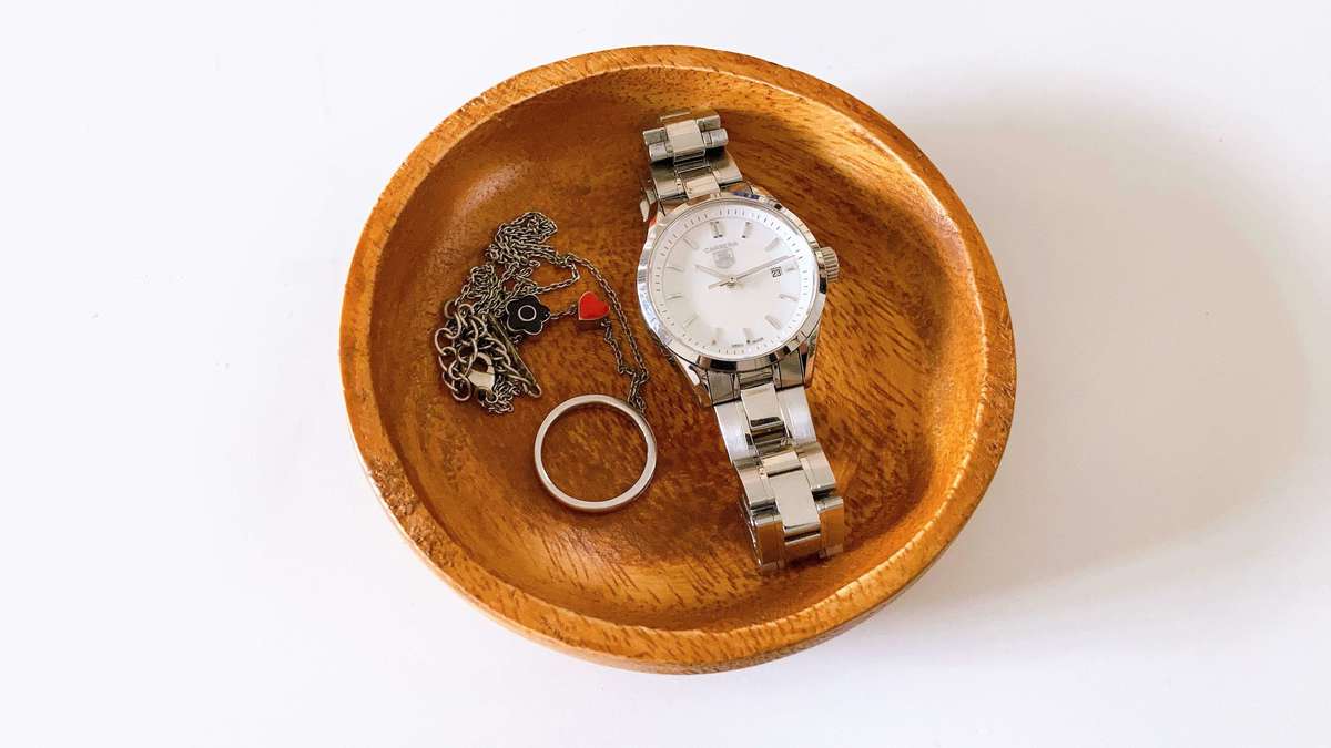普段よく使うアクセサリーや時計をさっと入れるのにもとても便利。木製なのでアクセサリーを置く時の音もカチャカチャ言わず温かみのある音で癒されますよ。