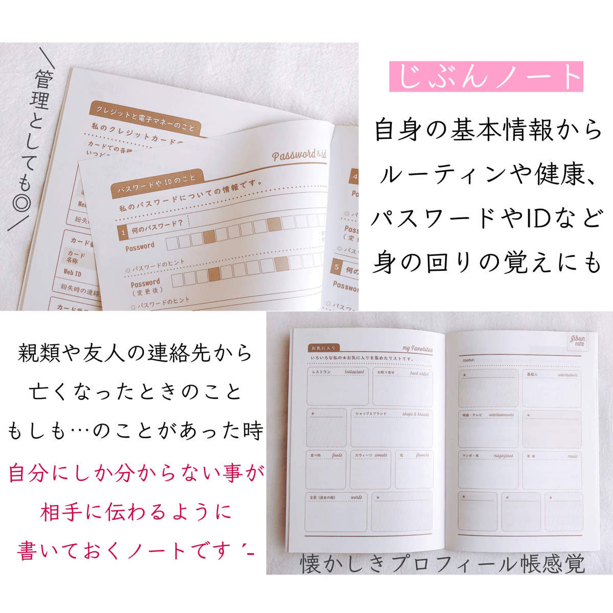 親類や友人の連絡先も記入でき、自分が亡くなったなど、「もしも」のことがあった時に、自分にしか分からないことを残った人に伝えるために書いておくノートです。