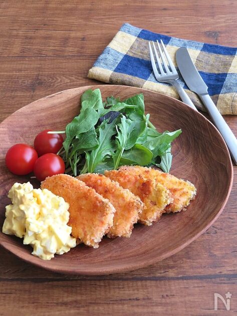 まるでカフェごはんのような鮭フライには、バジルを合わせたタルタルソースを添えるのが正解です。衣は贅沢にたっぷりつけて、サクサクでカリッとした食感に仕上げましょう。ソースとの組み合わせが絶品です。