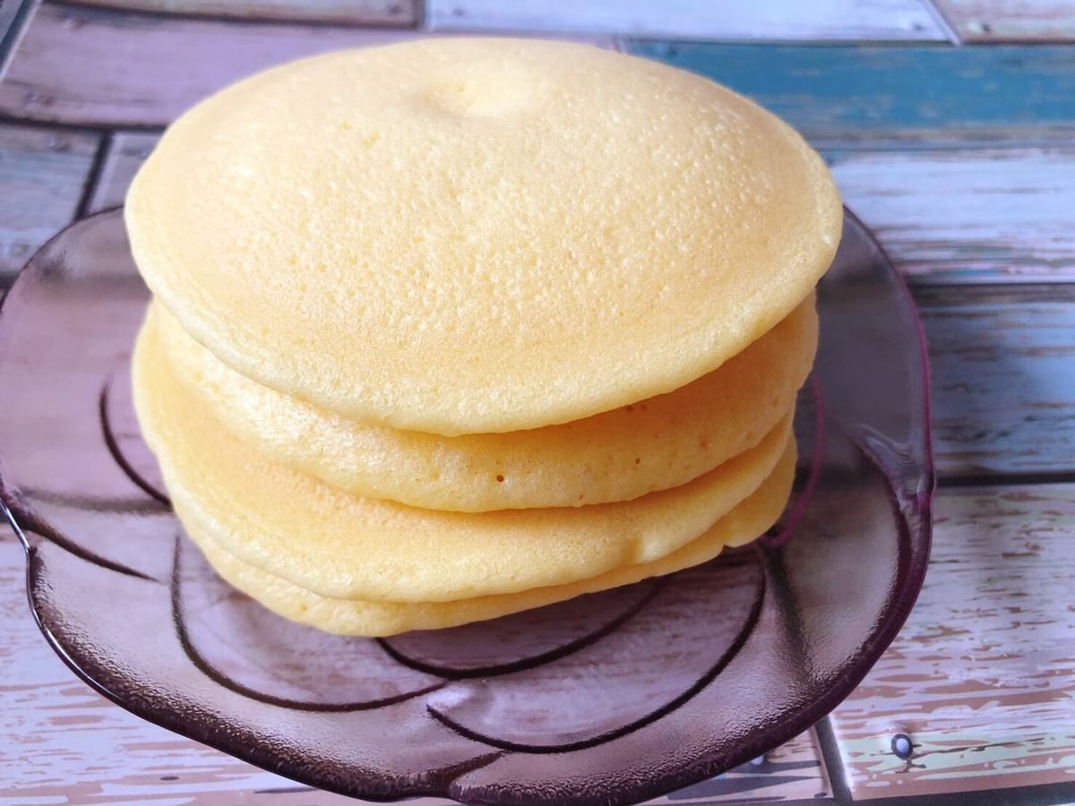 食感はふわもちっとしたパンケーキなのに、味はプリン。不思議ー!!