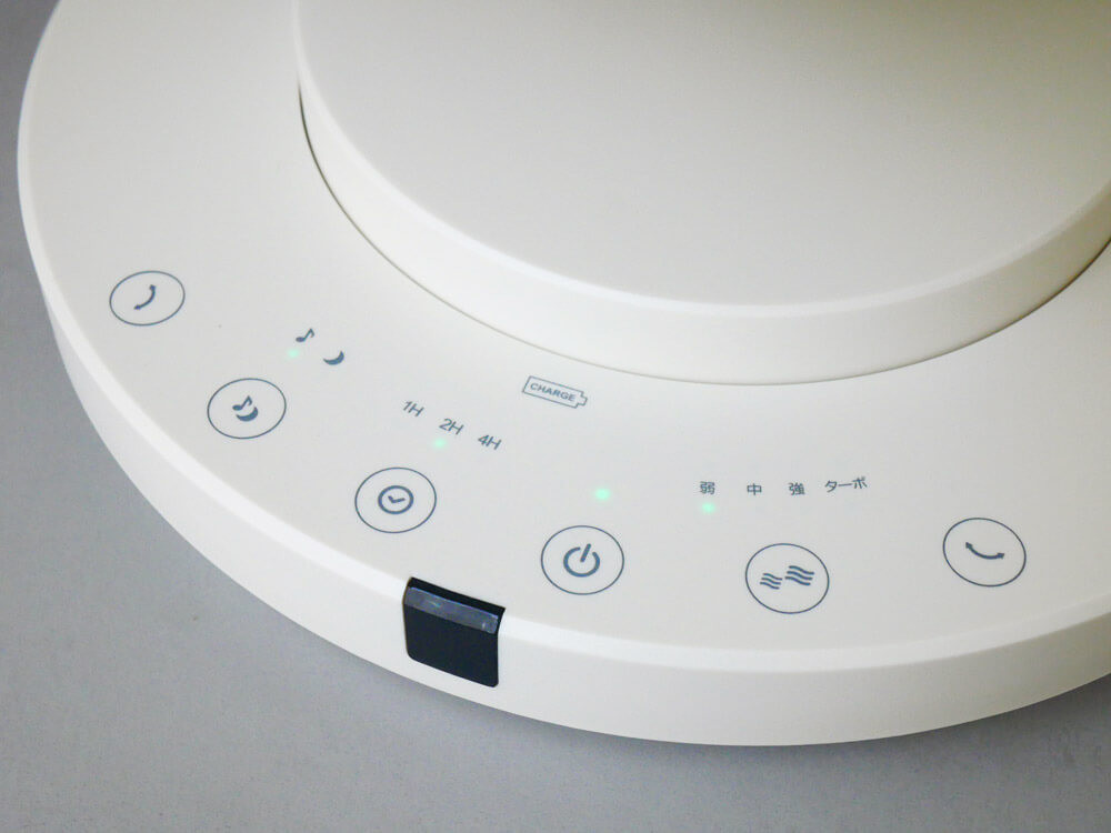 操作方法は台座の操作ボタンで簡単操作。 凹凸がなく、フラットなので見た目もスッキリしています。