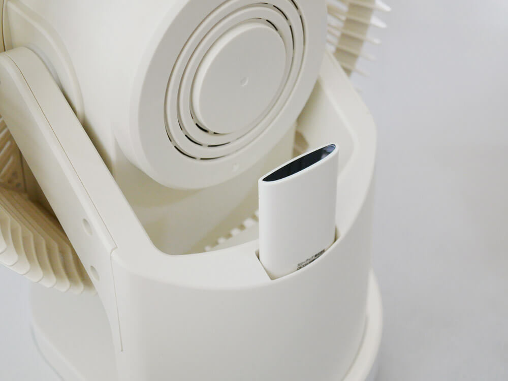 手に馴染むサイズ感とシンプルでインテリア性もあるデザインのリモコンは、本体裏部に収納できるので、無くす心配もありませんね。