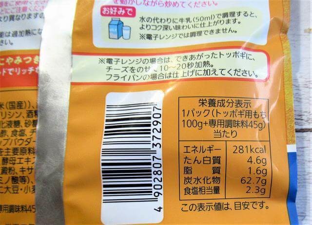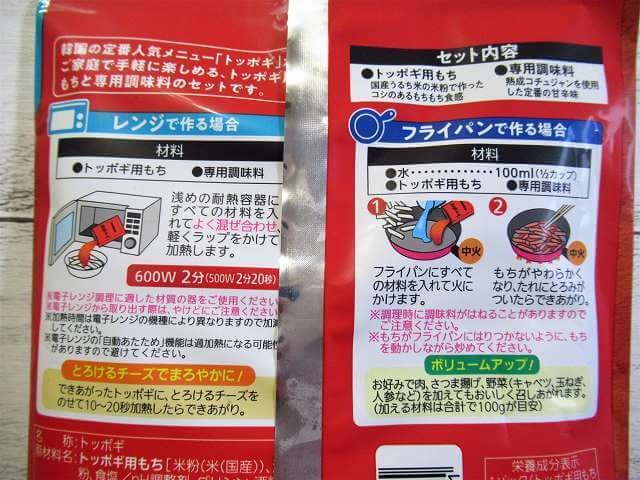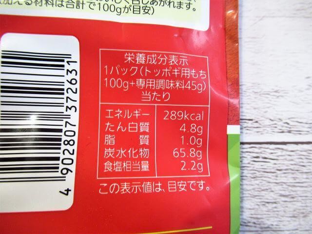 ・内容量:145g(トッポギ用もち100g、専用調味料45g)