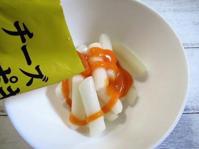 ちなみに、チーズトッポギはこの段階からかなりチーズの香りが強いです。ここで、すでに好き嫌いが分かれそうな印象も……。