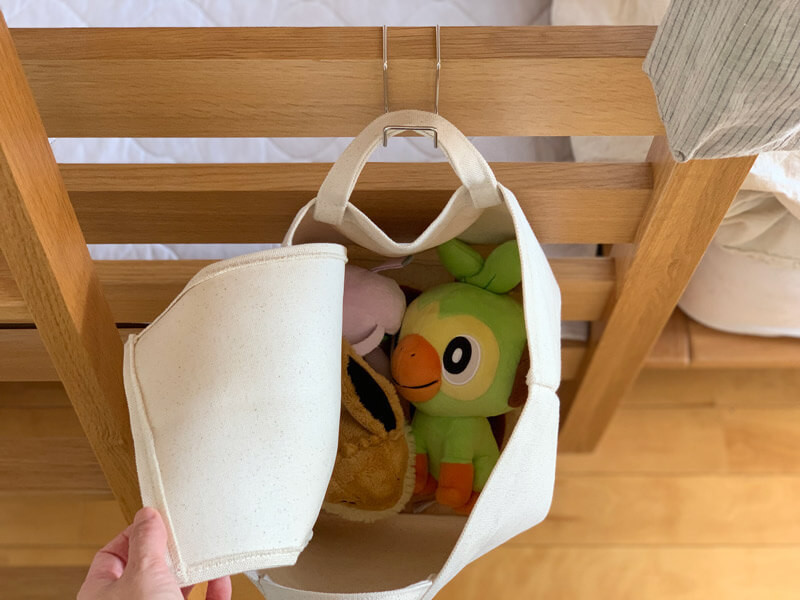 子どものベッド周りに増えがちなぬいぐるみのおうちにしてあげたり。
