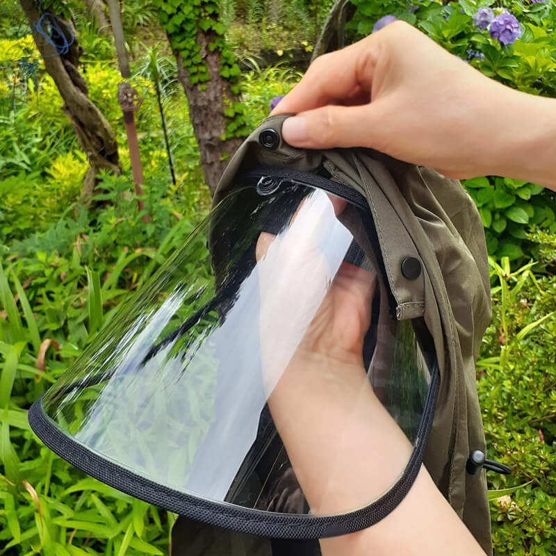 個人的に一番の悩みだったのが、顔を雨濡れから防ぐフード部分。呼吸がしやすくても短い透明カバーだと顔が濡れて化粧が落ちてしまい、反対に、顎まですっぽり覆うタイプは視界が息で曇るので、冷や冷やしながら運転していました。