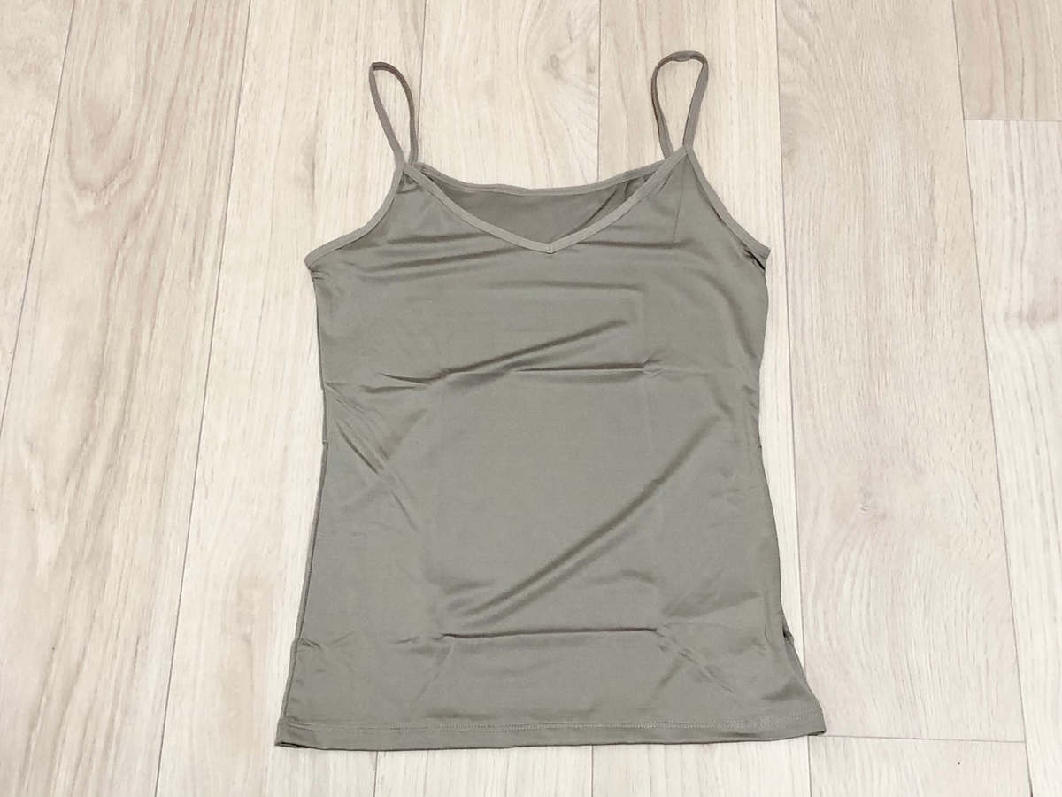 さらに、この「モカ」の色もユニクロのカーキの色味に似ている気がしました。ちなみにエアリズムキャミソールは990円なので、うまくダイソーに乗り換えられたら690円もお得になりますね!