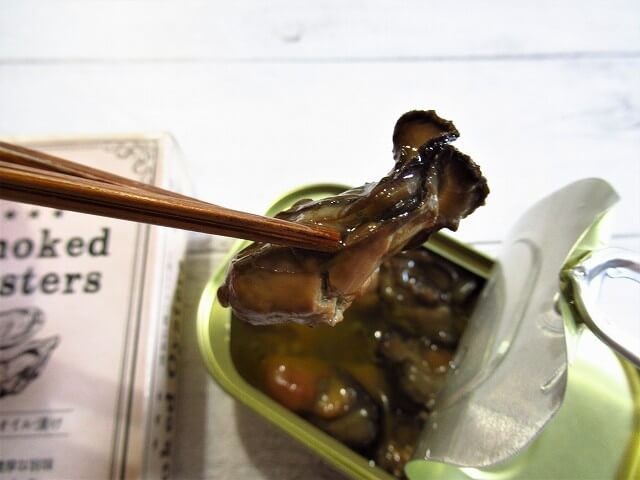 プルトップのふたを開けてみると、オイルに浸かった小ぶりな牡蠣がぎっしりとはいっています。
