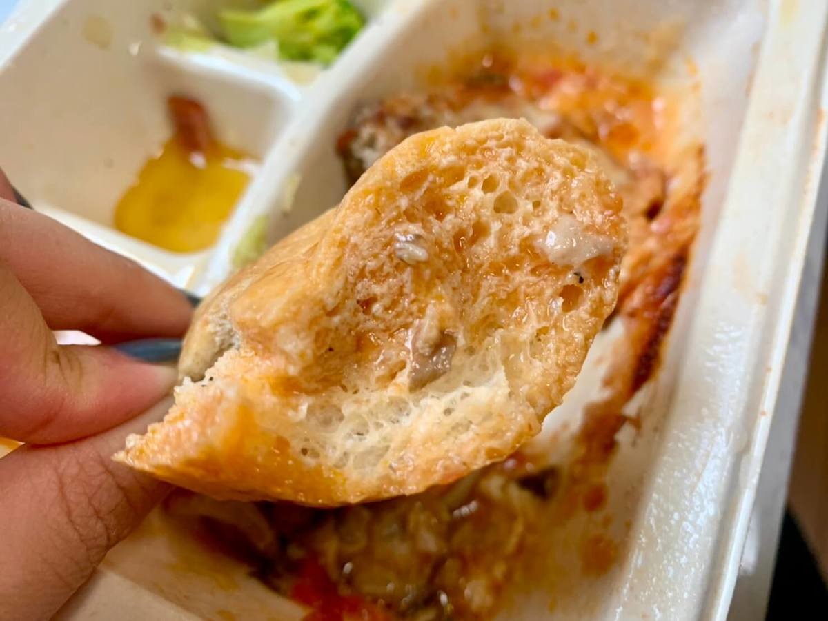600Wで6分間温めると、容器の横についているチーズがカチカチになってしまうので、解凍時間はこちらも短めがおすすめ。