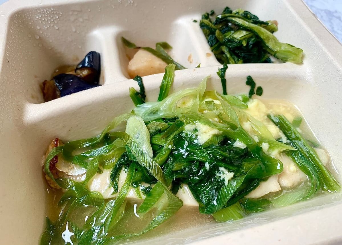 四川風と書いてあったのですが甘めの味付けだったので、もう少し辛いと個人的には嬉しいです。しかし中華料理独特の香辛料の風味がしないので、食べやすいよう配慮されているなと思いました。このメニューは全体的に脂っぽさを感じたので、副菜をもう少しあっさりしてほしいです。