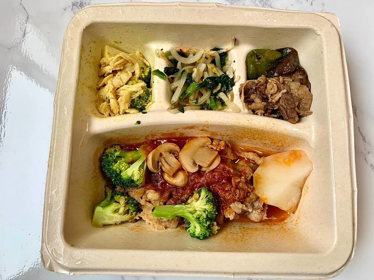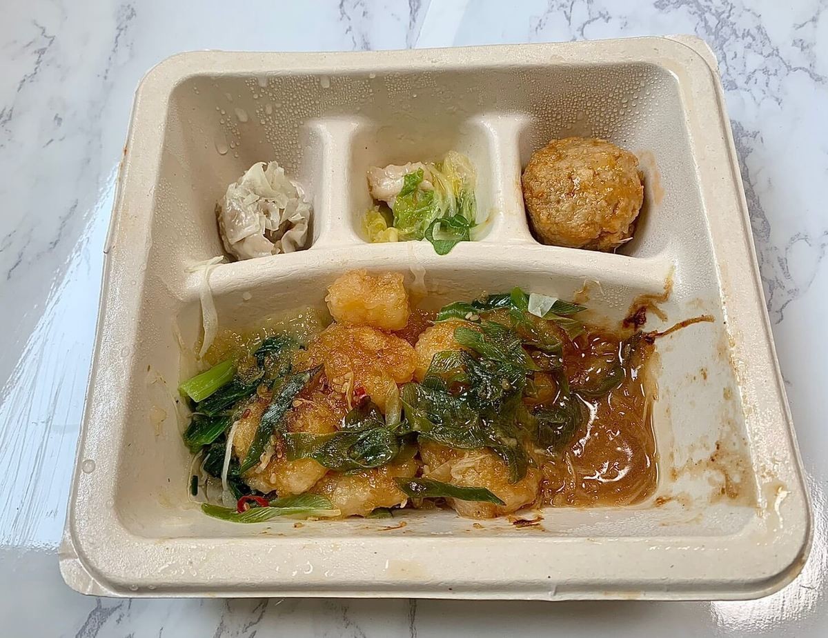 他のメニューと比べると、ボリュームが少なめ。冷凍だと水っぽくなるのではないか、そもそもタレが少なすぎるのではと思ったのですが、とろみのついたタレがたくさん入っていて驚き!
