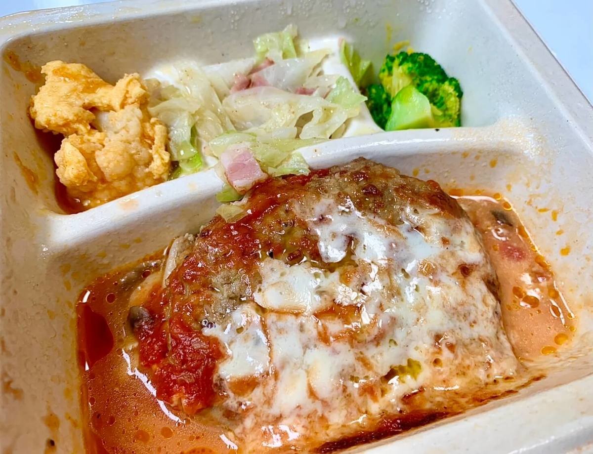 チキンハンバーグなので、サッパリとしていておいしかったです。ソースの見た目が水っぽかったので、味が薄いのではないかと心配でしたが、しっかりと味はついていました。