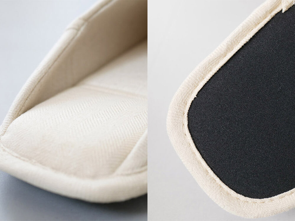 甲部とインナーが麻(リネン)素材なので、サラッとした肌触りが癖になります。さらに、長く使い込むことでさらに風合いが増していくのもリネン素材の魅力です。
