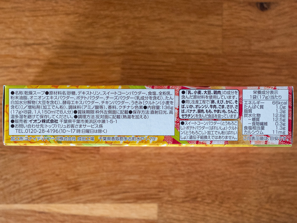 こちらが、今回ご紹介するトップバリュのカップスープ。