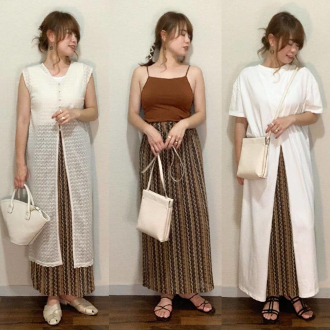 プチプラでありながら夏コーデを簡単にブラッシュアップしてくれるスカートを、ファッショニスタのアレンジに併せて詳しくお伝えしていきますね。