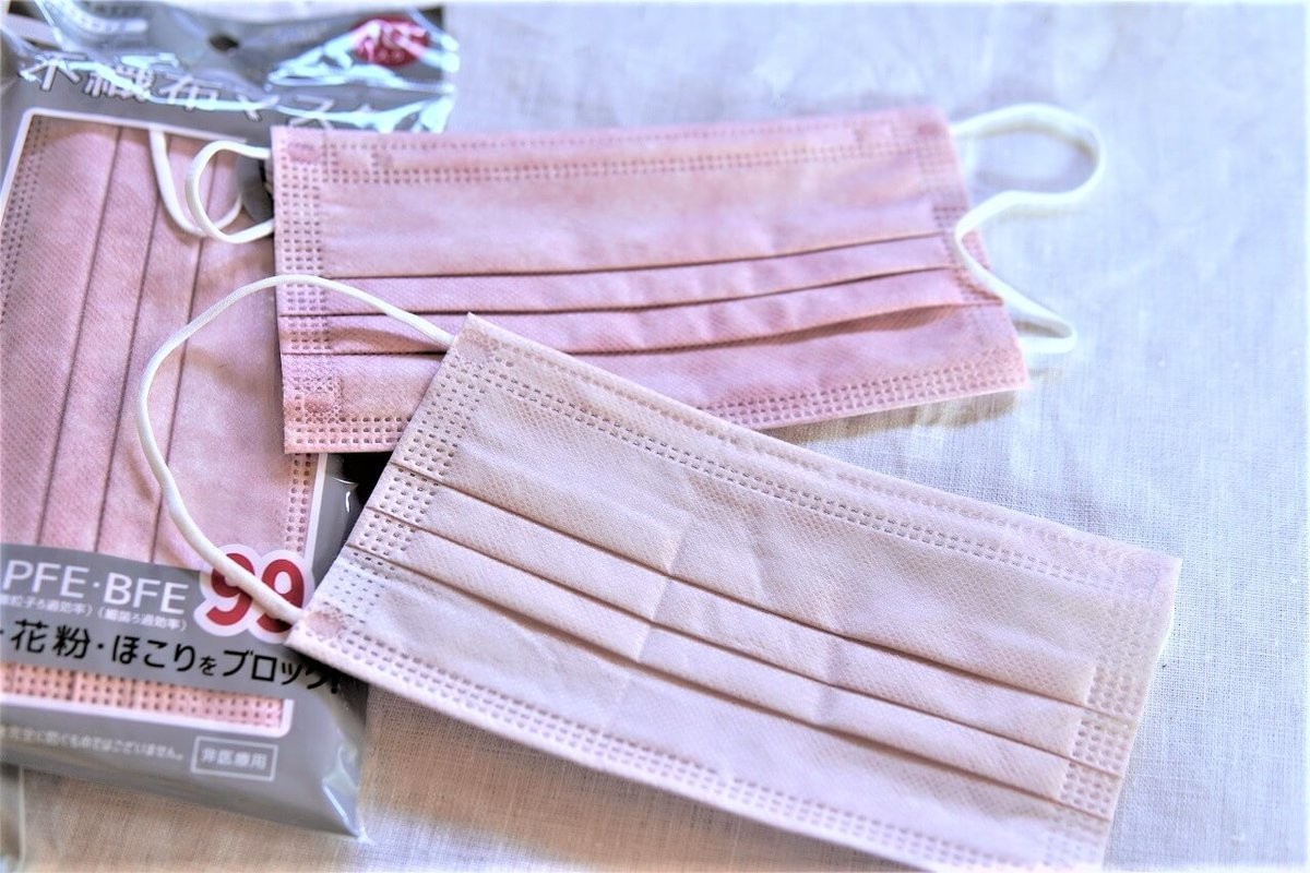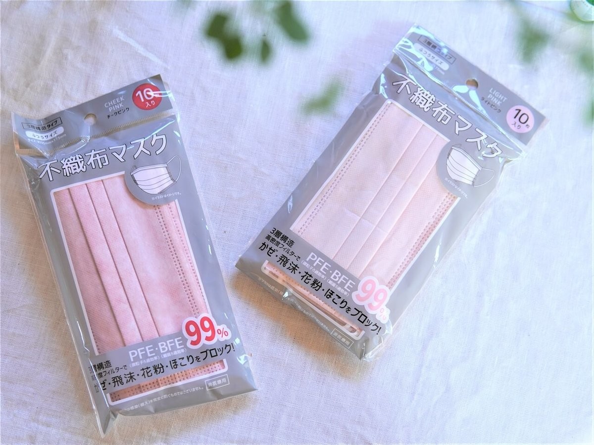 ダイソーで顔色がよく見えると評判のカラー(血色)不織布マスクを見つけました♪