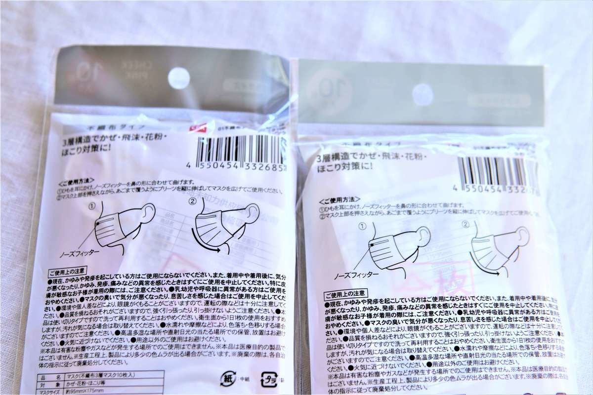先ほどご紹介したダイソーのカラー不織布マスクにも、サイズがぴったりで使いやすいです。