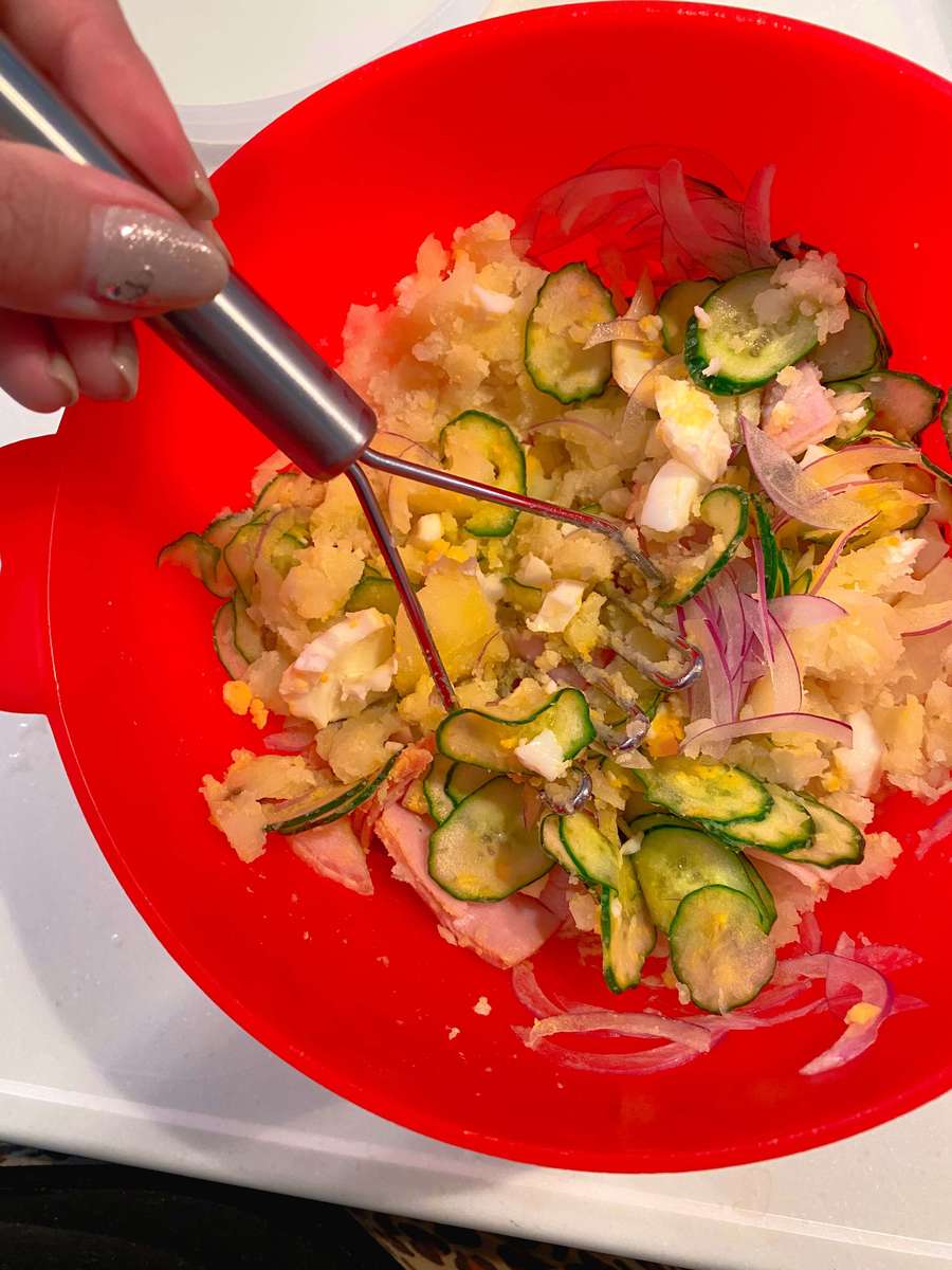 ほくほくジャガイモも、ゆで卵もすぐに潰れます。