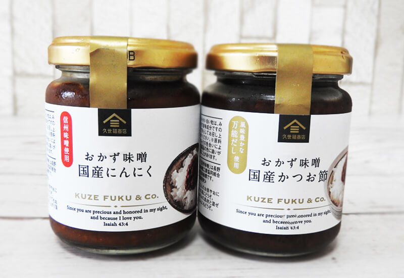 今回は、久世福商店のおかず味噌「国産にんにく」と「国産かつお節」を紹介します。