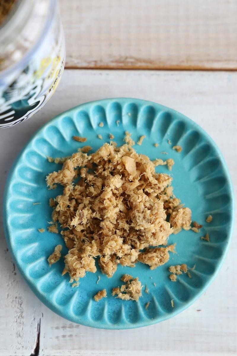 そして、シーズニングなどと一緒にさばフレークを振りかけていただきます。